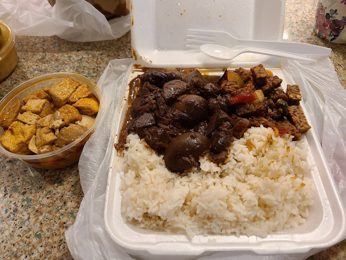 Great Indonesian food. This place is worth the visit. Food reasonable price. I ate my lunch at the shop and serveral order to go plate for my family. Serves beef rendang, indo fried chicken and vegan options. Vegan dishes include yellow curry with potato, kale, spicy tofu/tempeh stew and fried tofu. Bad.. Place could use a good floor mopping. Table need a wipe down. Store located in sketchy neighborhood.